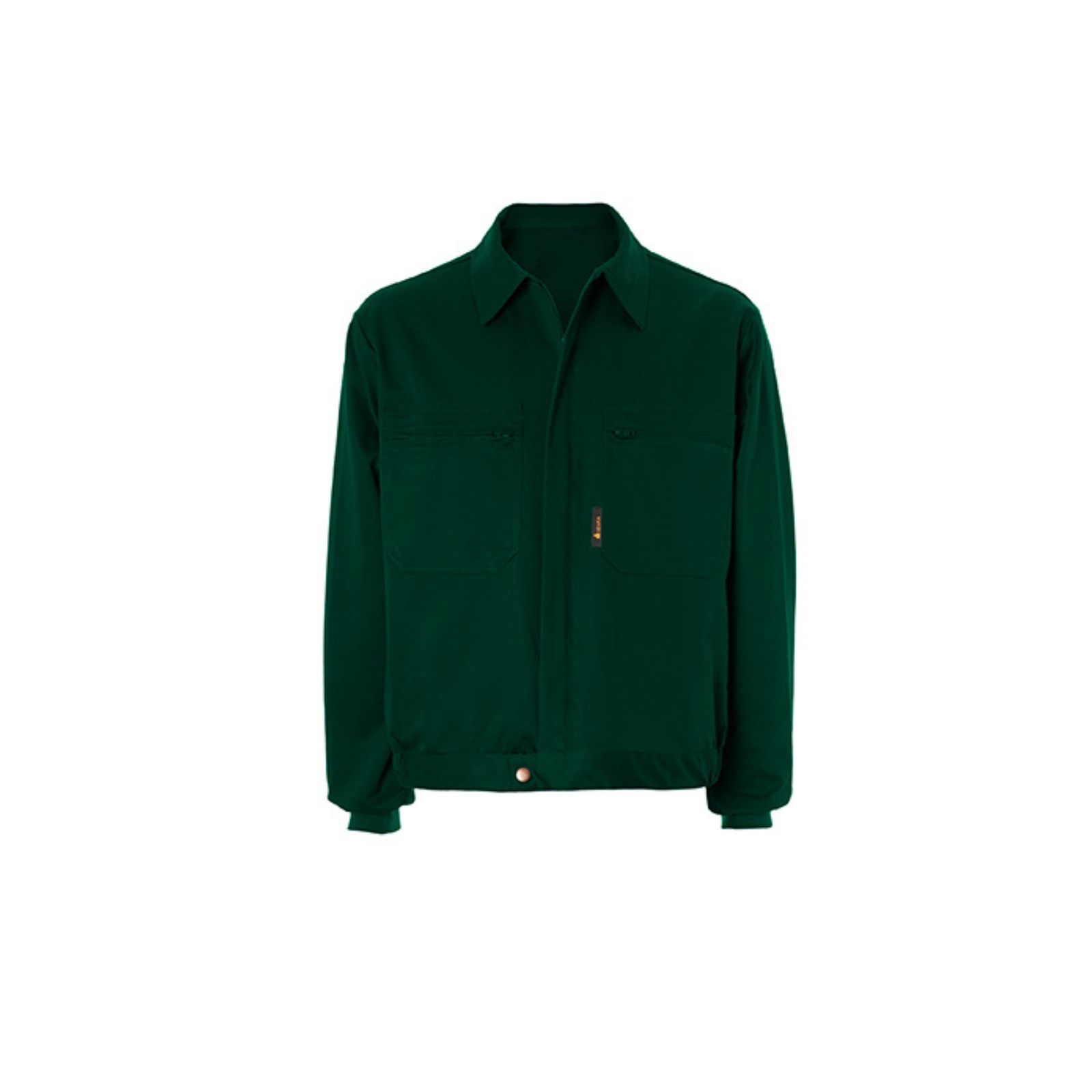 Bomber jacket with central covered zip, 2 patch pockets with zip and zip cover, elastics cuffs, darts in the back at the waist and side eslastic.