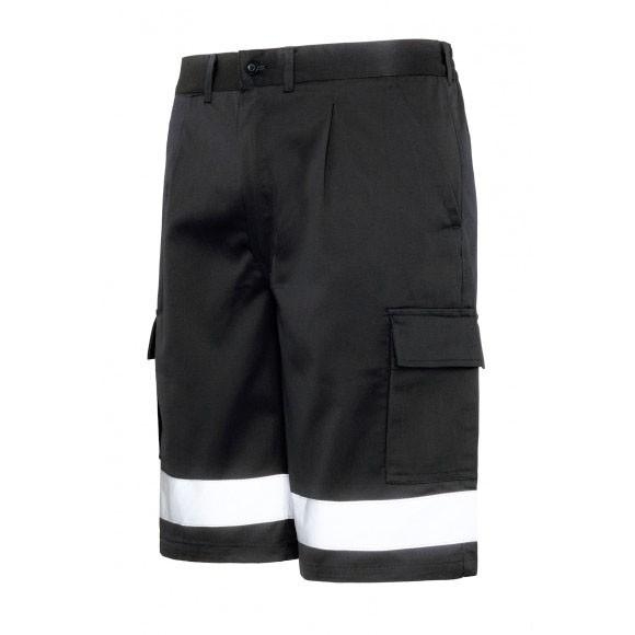 Bermuda 1/2 cintura elástica espalda, 2 bolsillos delanteros inclinados, relojera, 1 bolsillo trasero de parche con clip, 2 bolsillos laterales de parche con fuelle, tapeta y velcro en ambas piernas. 1 banda reflectante.