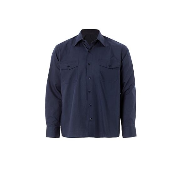 Camisa manga larga, 2 bolsillos con cartera, puños ojal y botón. Canesú y pinzas en espalda.