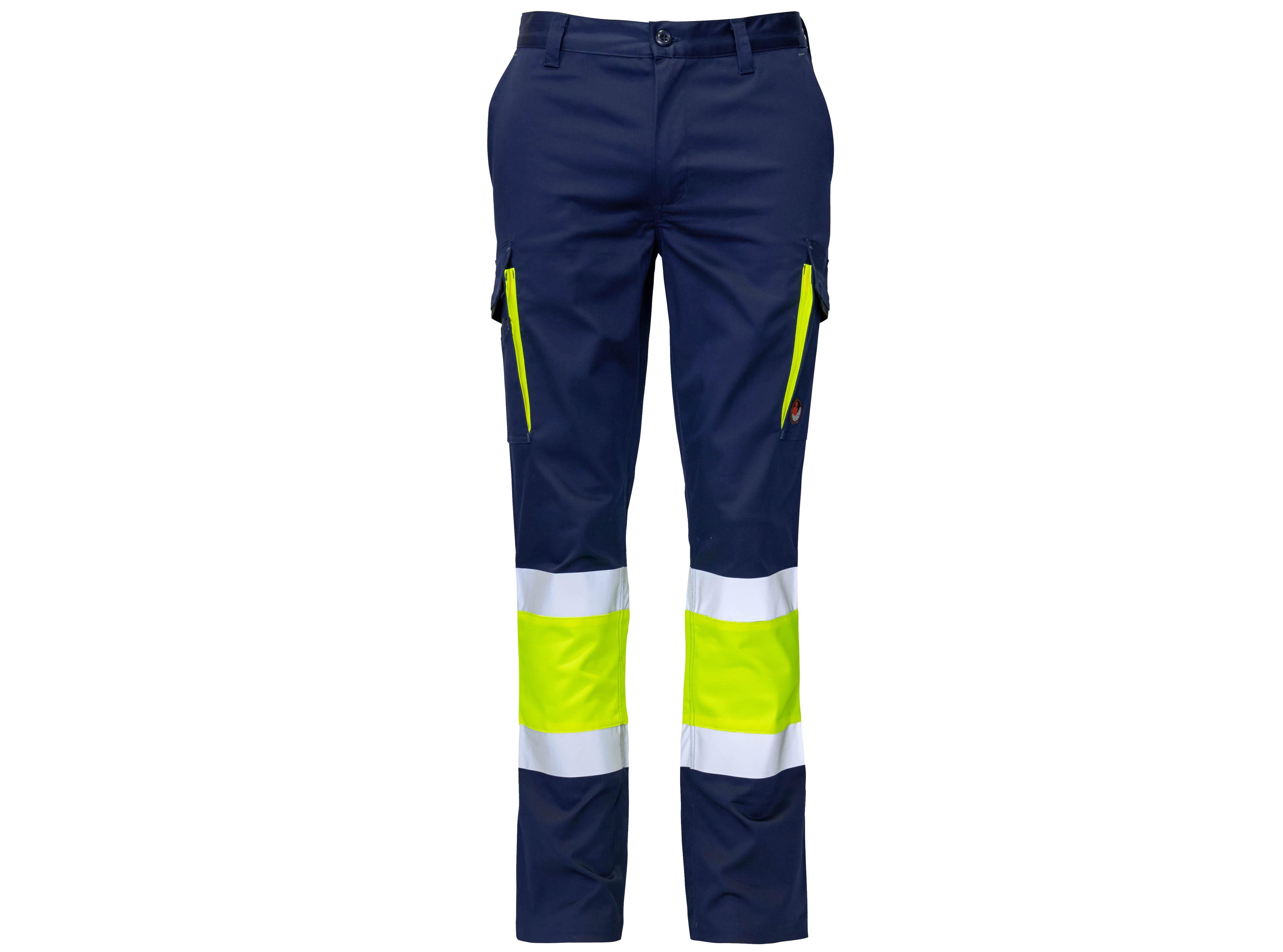 Pantalón multibolsillos elastano Alta Visibilidad Slim Fit\r\ntejido 65% poliéster 33% algodón 2% elastano. 250 grs.