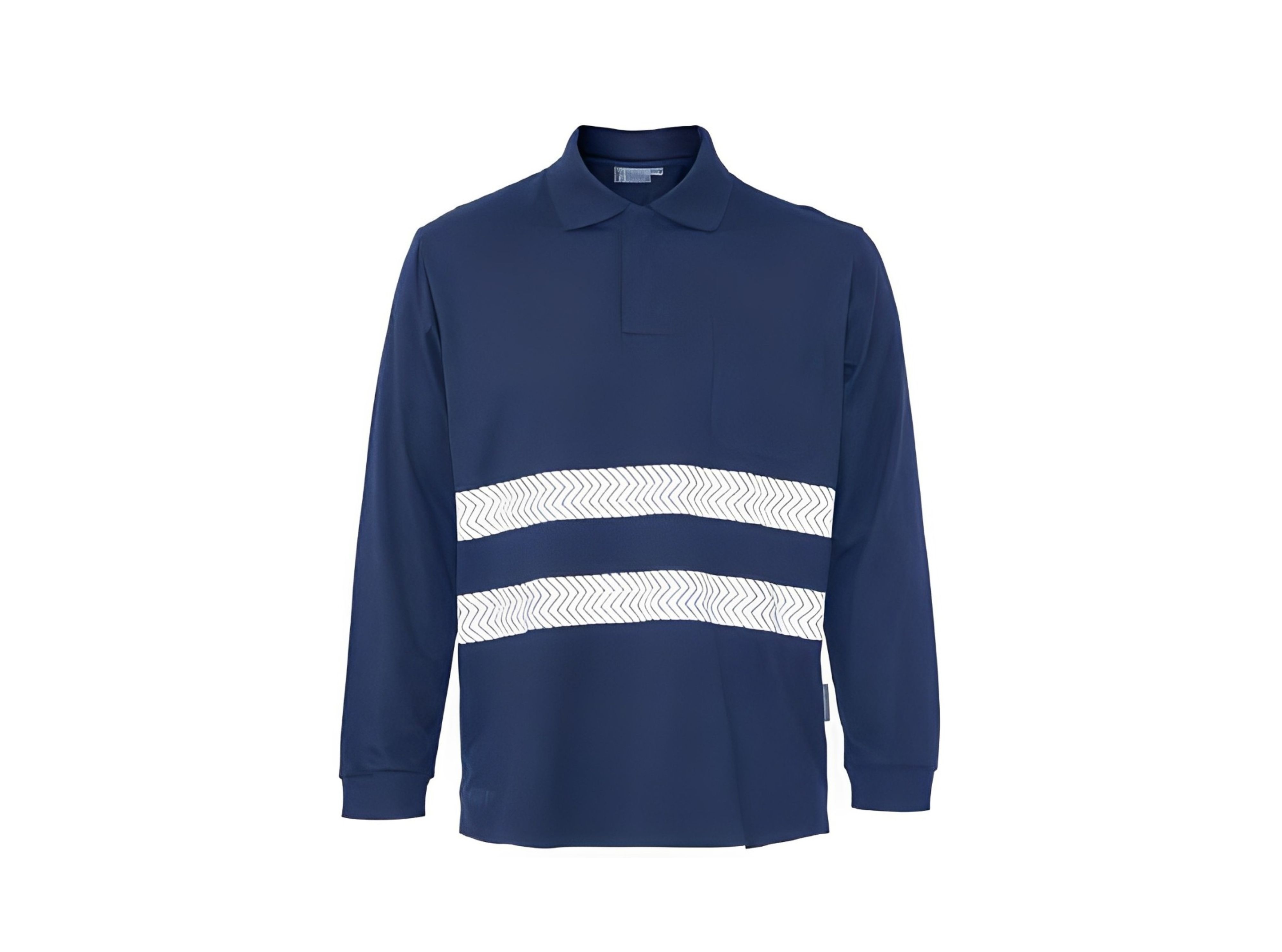 Polo manche longue point liso ignífuga- Atex. Une poche. con velcro en poitrine. Poignets élastiques.. 2 bandes réfléchissantes termoselladas discontinuas ignifuges en torse