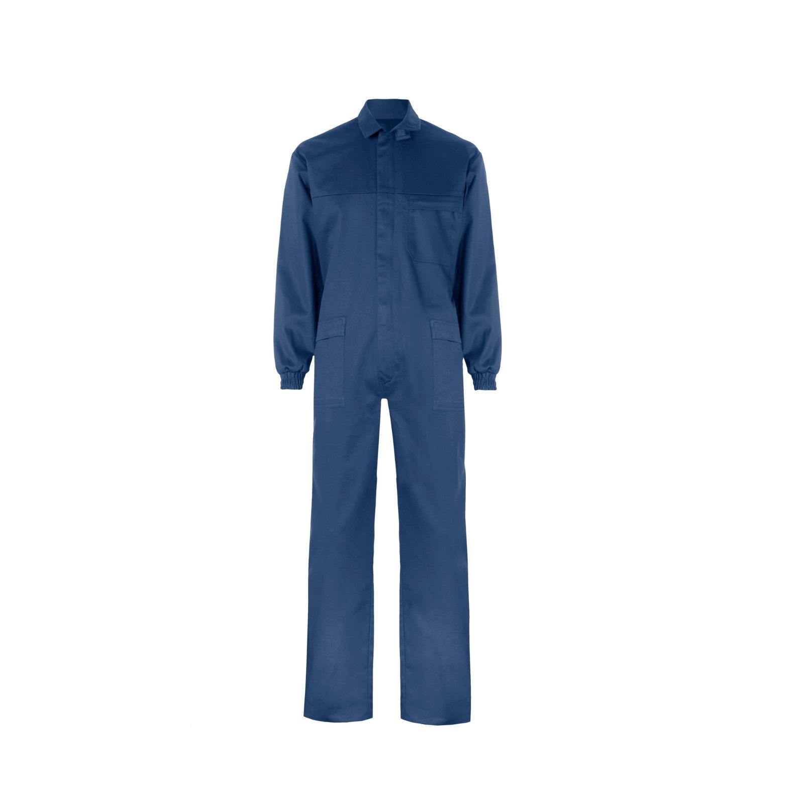 Bleu de travail recto con fermeture metálica soutenue et velcro, Une poche.s supérie de plaquée con à rabats cosida et fermeture, 2 poches inférieurees de plaquée con à rabats cosida, 1 poche arrière plaquée. con à rabats cosida, poignets ajustables con à élastiques, canesú delantero.